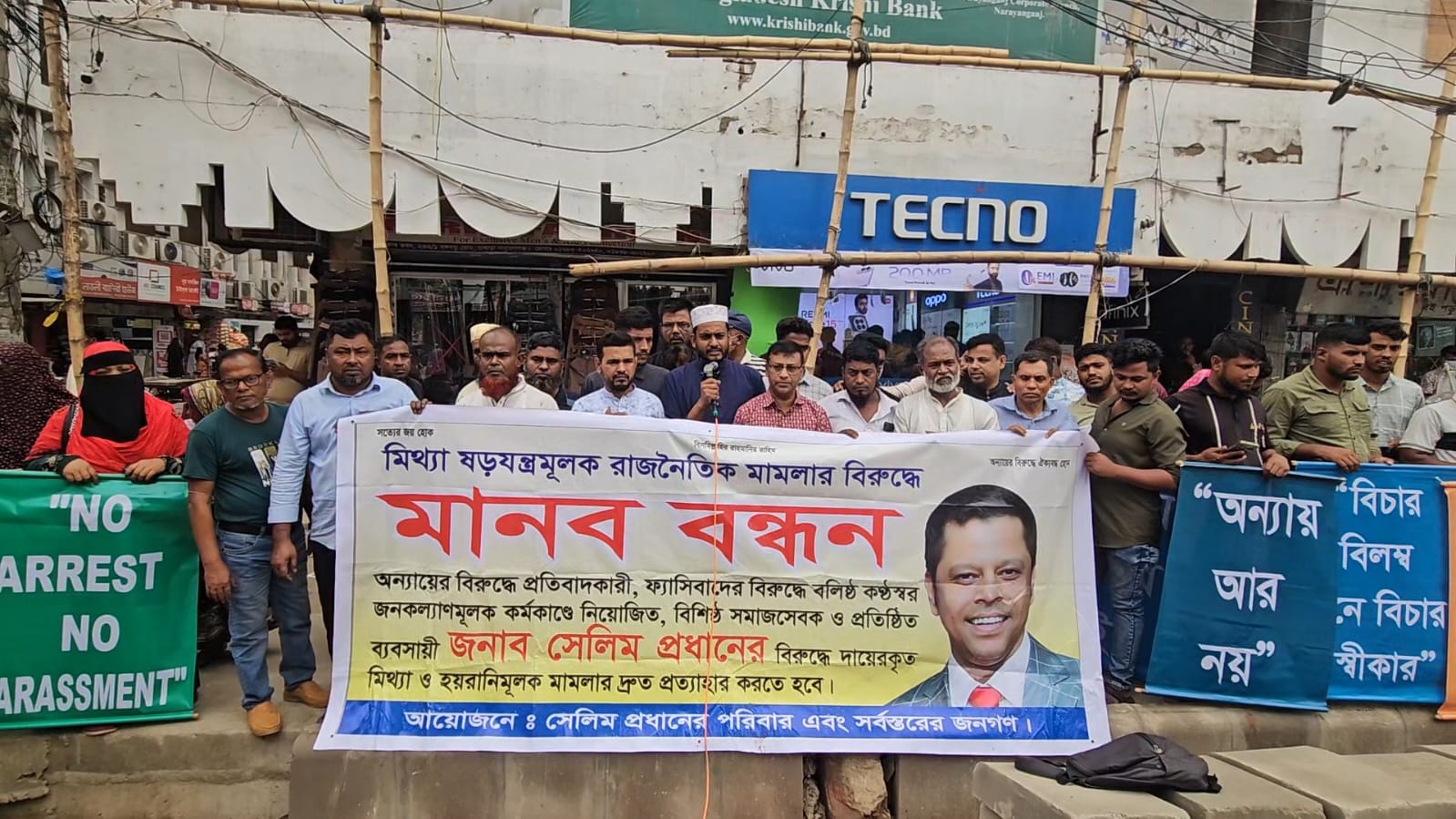 সেলিম প্রধানের বিরুদ্ধে মিথ্যা মামলা প্রত্যাহার ও মুক্তির দাবিতে নারায়ণগঞ্জে মানববন্ধন