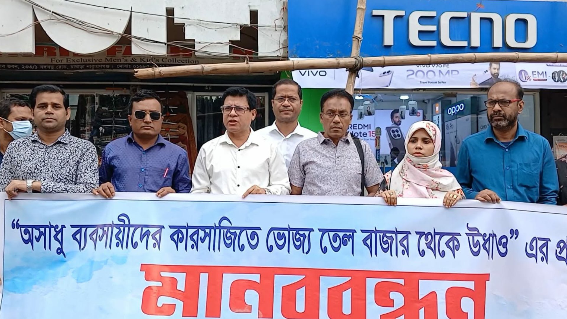 ভোজ্যতেলের বাজারে অস্থিরতার প্রতিবাদে মানববন্ধন