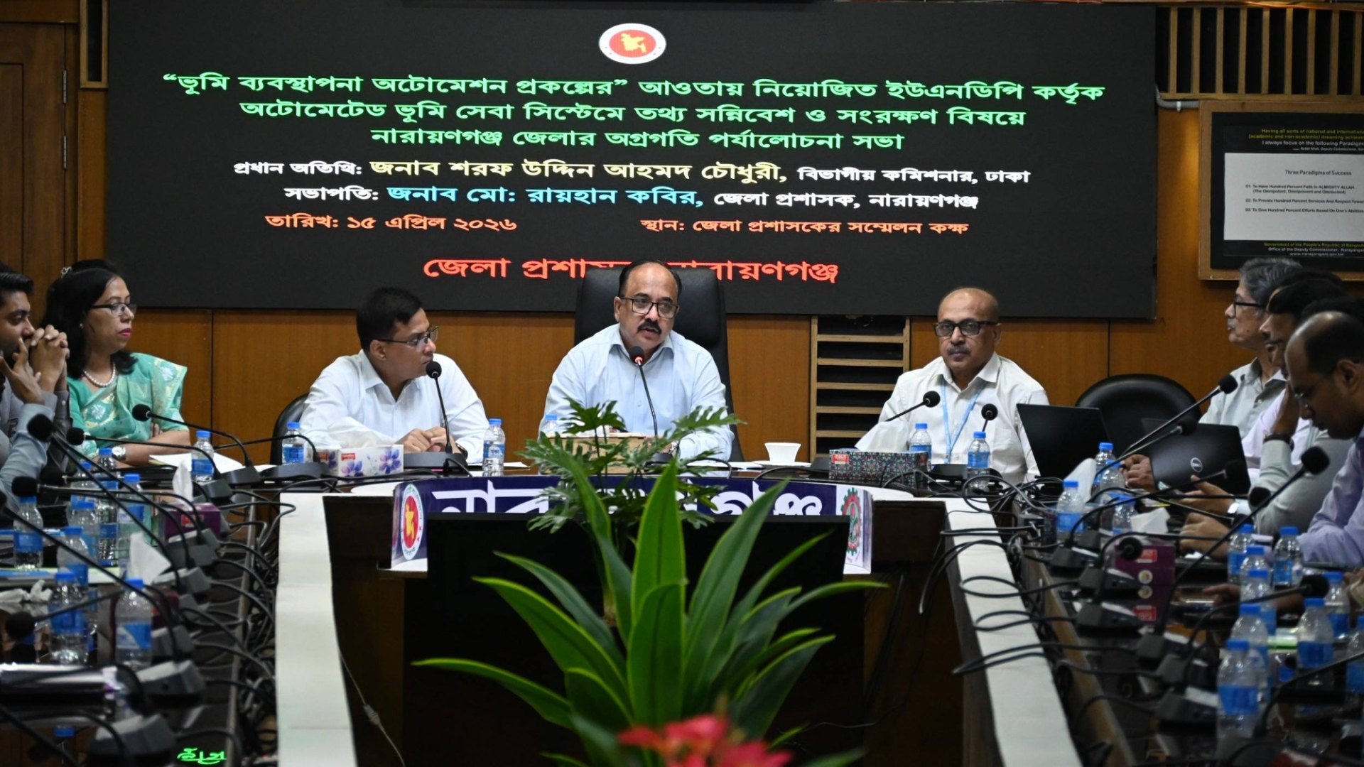 নারায়ণগঞ্জে ভূমি ব্যবস্থাপনায় ডিজিটাল রূপান্তরের অংশ হিসেবে অটোমেটেড ভূমি সেবা সিস্টেমে তথ্য সন্নিবেশ ও সংরক্ষণ কার্যক্রমের অগ্রগতি পর্যালোচনা সভা অনুষ্ঠিত হয়েছে।