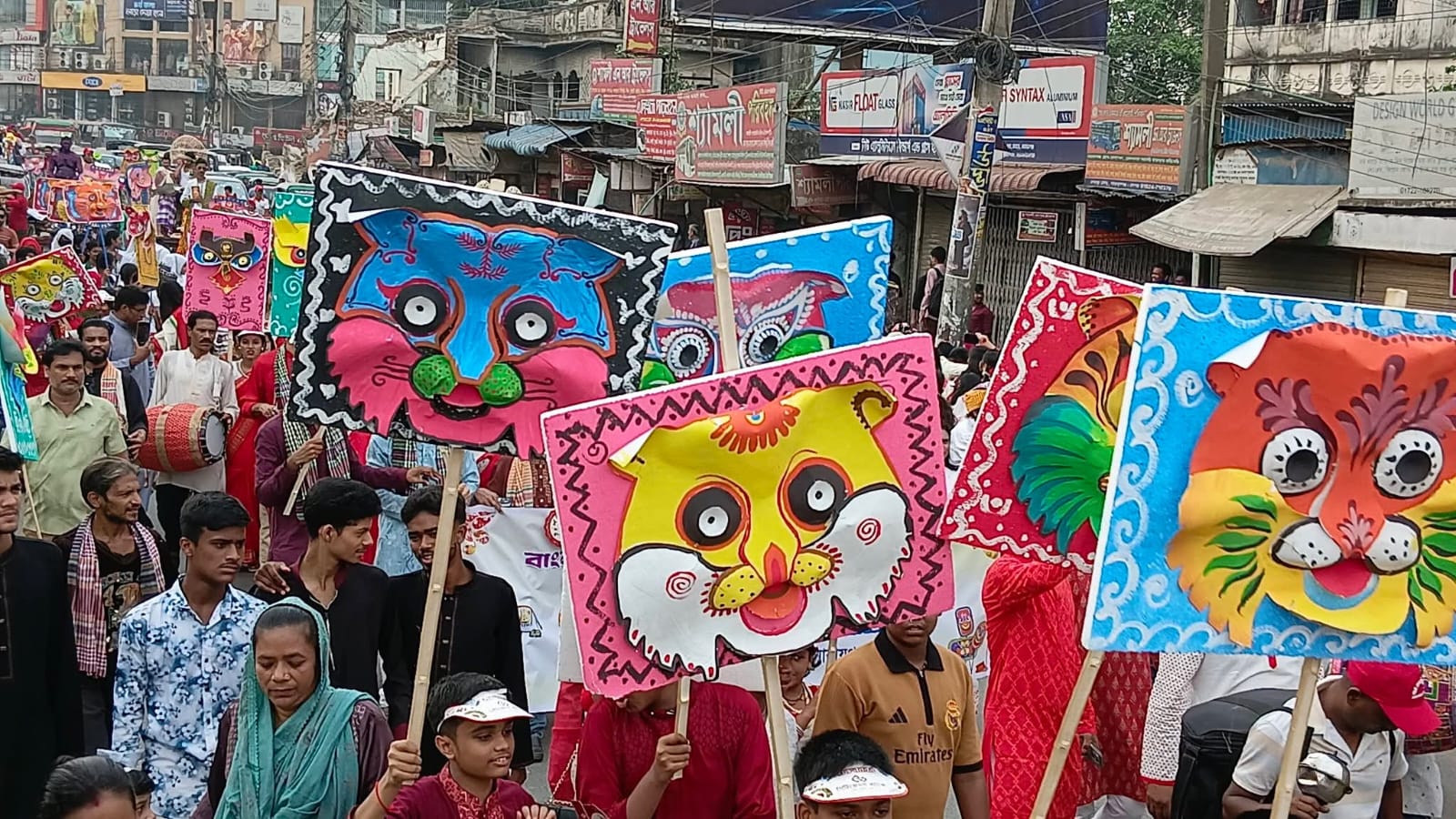 মঙ্গলবার (১৪ এপ্রিল) সকালে চাষাঢ়া থেকে এই শোভাযাত্রা শুরু হয়।
